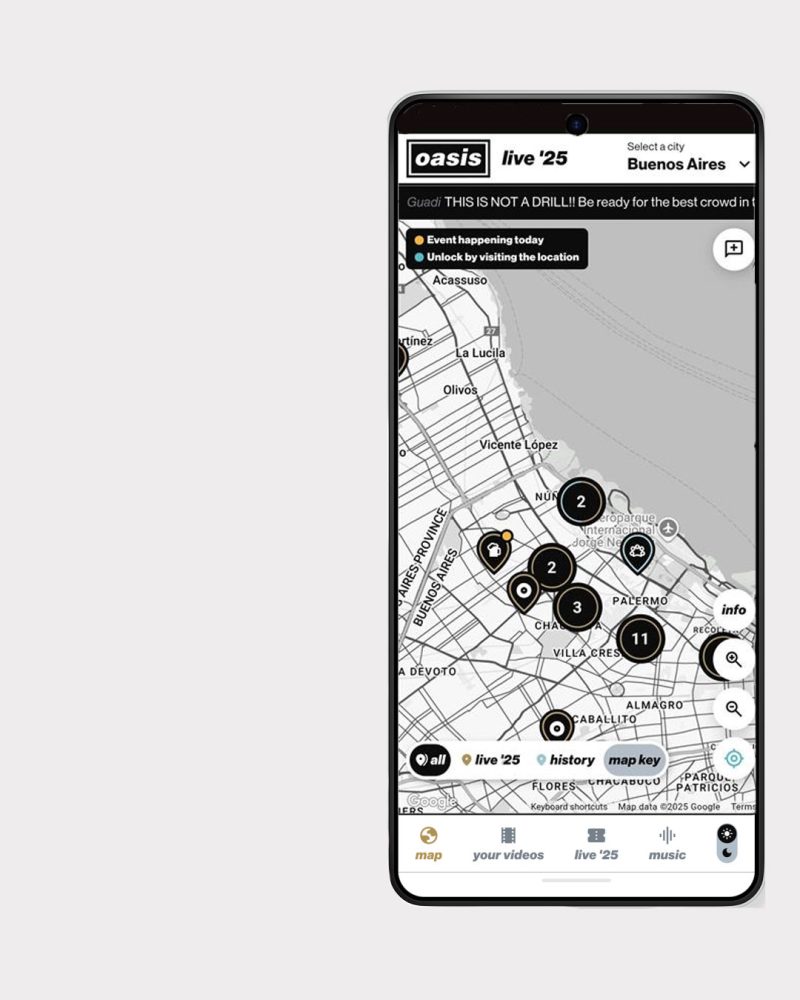📍Explore curated tour city hotspots, from iconic Oasis landmarks to Live ‘25 events.